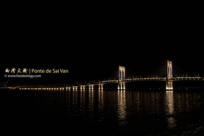 夜幕里的西湾大桥,因为酷似“M”形的桥洞而又被叫作“M&M”桥,它是澳门连接澳门本岛和氹仔岛的三座大桥之一,全长2.2公里。在台风天里,当其它两座大桥需要被关闭的时候,西湾大桥的下层会被打开,让车辆通行。