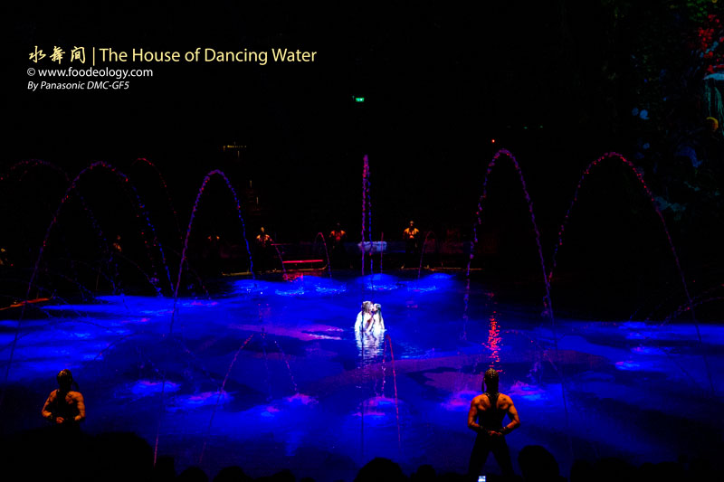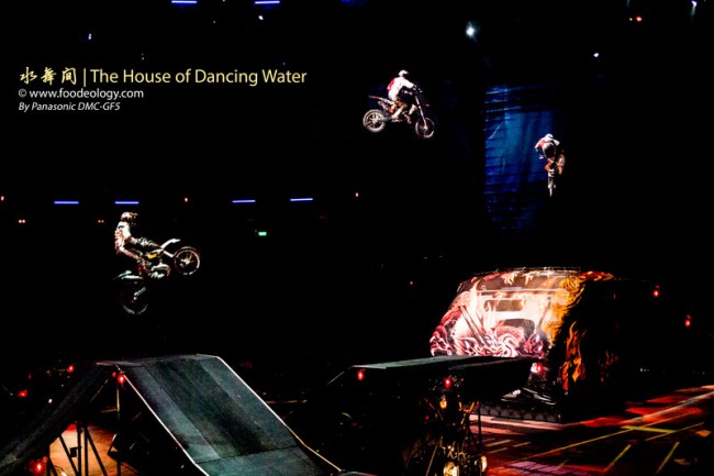 这个舞台之大,不在宽度而在深度。上至8层楼高,下至7米水深,370多万加仑的水,比5个奥林匹克泳池还要多。也许你喜欢的是239个喷泉口打造出的七彩喷泉;也许你爱上的是摩托车飞跃入场的帅气;也许你惊叹高空中看似自如其实颇让人纠心的杂技;又也许你忘不了演员从秋千与高空凌空入水的种种姿态。总之,90分钟的表演里,总会有一样东西让你记得由灵感创作大师Franco Dragone亲自打造的这场空前巨铸。