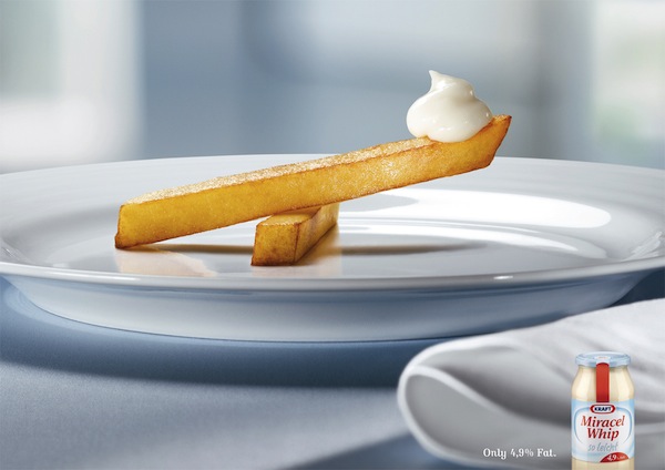 比较隐晦的一个广告,看到下面的小字吗?只有4.9%的脂肪,所以那么轻,所以可以有这样的平衡。