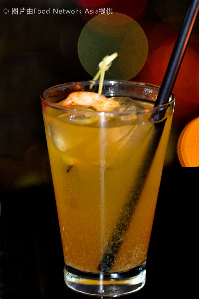 而这杯则是KU DÉ TA密制的芥辣玛丽(wasabi mary)和法国灰雁伏特加调制的鸡尾酒。杯中那只芥辣烘烤的大虾,简直和这杯酒的名字一样抢眼:Wassup, B ! 哈哈,这不会是虾的心声吧?不过由于对虾和伏特加都有轻微过敏,这杯酒我就无福消受了。TvT