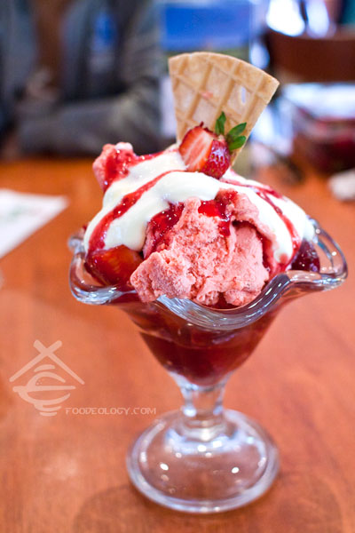 这个我从很久前在网上看到时就觊觎的Sunny Ridge自制草莓冰淇淋+草莓雪葩+新鲜草莓+草莓糖浆+奶油,是不是很草莓呢!大坨的草莓冰淇淋是会有一点点偏甜,但因为有足够的新鲜草莓的天然酸甜,还有草莓雪葩的清爽口感,一点都不会觉得腻。其实好大份,2个人吃都足够,就冲那长相,你也会想要试一试吧。