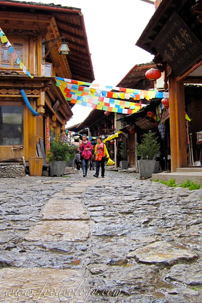 很藏族的矮桌,与粗犷风格对比鲜明的玲珑小灯,临窗的雅座,在这么一个安静的地方听古城淅沥的雨声,看窗外悠然的游客,好一个尽享藏族风情里的下午茶时光。