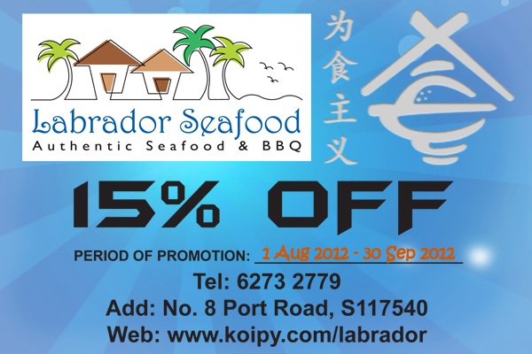 啊,说回拉柏多海鲜的优惠。即日起到9月30号,大家去K卡网页打印优惠券或者输入手机号,就可以在Labrador Seafood享受15%优惠,持有K卡的朋友同时还可以积分。