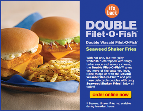 近一年前,新加坡的麦当劳推出过芥末味的鳕鱼汉堡。推销了几个月后,突然就拿下了。
