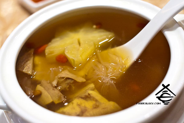 上星期介绍的翡翠金阁一连串的精致菜肴中,其中一个给为食主义留下深刻印象的就是那道星月炖螺头。