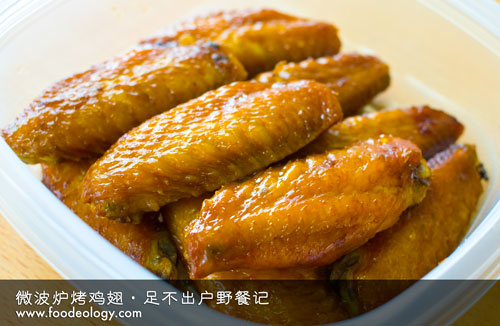 - 把鸡翅捞出放进一个干净的盘子里。微波炉中高火正反各5分钟。