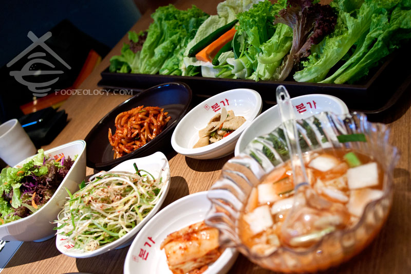 我依旧是韩国菜的黑哈哈哈哈哈哈,果断的每个韩国烧烤餐厅都是差不多的吃法。。。虽然开胃菜看起来一大堆,可每个都是泡菜啊!!!