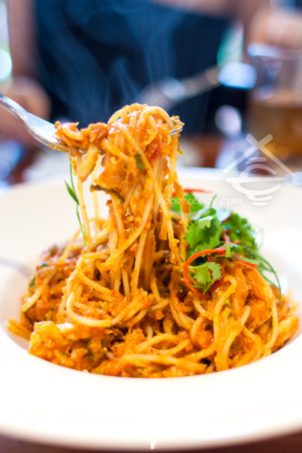 说了半天的招牌菜,这就是Halia的招牌了。莱佛士酒店可真是新加坡的招牌酒店,除了有从这里发源的“新加坡司令”酒,还有用“国菜”辣椒螃蟹做出来的意面。可能期望太高,个人觉得它的味道不过是预料中的辣椒螃蟹味,并没有想象中的那么惊艳。不过之前也吃过别家尝试用螃蟹做出来的意面;相比之下,还是得承认Halia才是真正把汤汁的味道融进了面里。
