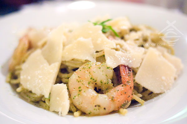 Pesto香蒜酱调制出来的意大利面酱,用蒜泥、九层塔、松仁、橄榄油和parmesan芝士融合而成,味道很像aglio olio。