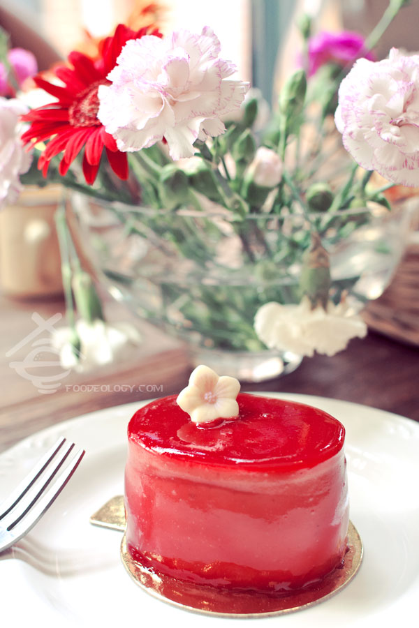 两个甜品,我们3个人在那里拍了大概10分钟的照,餐厅里的那些服务员应该都对我们无语了吧。但这样美丽的甜品,这样诱人的色彩,有这样鲜艳的花儿作背景,还有那么温暖的午后阳光,还有什么比这样的意境更让人陶醉的呢?