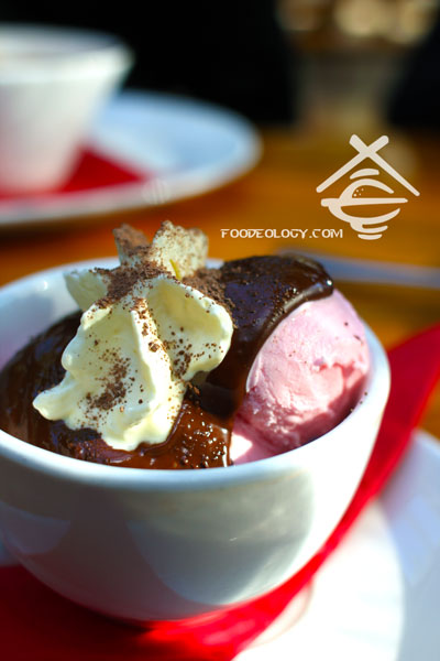 为食主义当时是看它的草莓冰淇淋好诱人,忍不住舍弃喝热巧克力的机会而点了它。