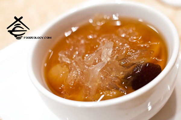 这个燕窝甜汤是潮州菜里的传统甜品,红枣、桂圆、莲子、银杏及燕窝的搭配,让这道饭后甜点滋补暖心。
