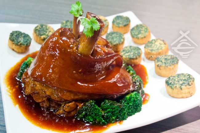 加了冰糖的红烧炖煮,果然更有江南的风味。很酥很烂的猪蹄,若不是它实在非常肥润,真想多吃几口。不过四周围那些菠菜豆腐在实际摆盘时只有4个,如有需要,可以另行添加。