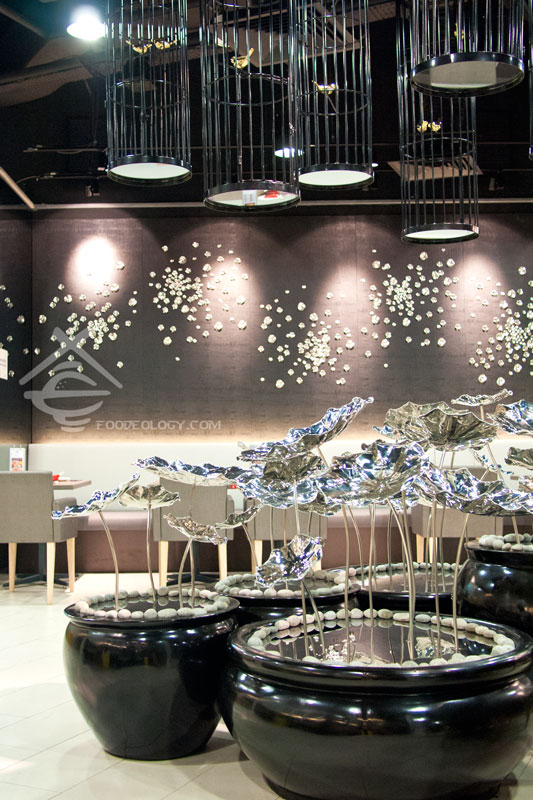 “江南可采莲,莲叶何田田”。翡翠江南用的正是莲叶清新婀娜之态,意外之处在乎餐厅黑白的色系与它金属的质感。如果你有机会走进餐厅,你还会发现墙上有很多荷叶图,那是用真的荷叶印制出来的——凹凸的纹路,触手可及的江南之夏。