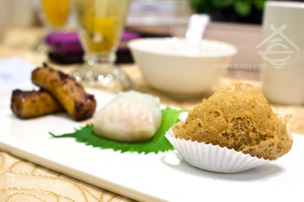 翡翠的蜂巢芋角和我在别家吃的不太一样。别家的芋角馅一般是白色的,比较糊;翡翠的用的猪肉更瘦,而且用酱油着色过,口味各有千秋。