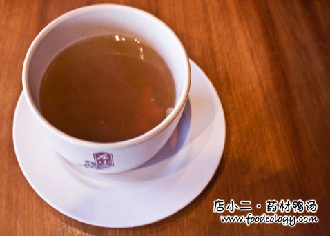 这汤是和药材鸭腿饭一起的。香浓扑鼻的药材味儿,浸着甜甜的枸杞子,怎一个鲜字了得。因为它上得早,所以作个开胃汤还挺不错。