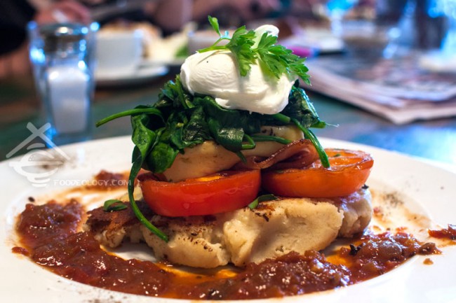 可爱的是一般的Eggs Benedict都只有2个English Muffin,它家偏生加上一个来承载“了不起的西红柿”。