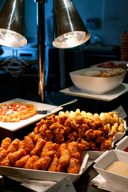 Antipasti(意式开胃菜)是这个下午茶自助的新菜,其中包括德国黑森林火腿肉(German Black Forest ham)、玫瑰花色拉米火腿(Rosette salami)等。还有一些热食,比如牧羊人派(Sherperd’s Pie)、烤三文鱼、法式蔬菜杂烩(ratatouille)、披萨、炸鸡(chicken karaage)、薯泥饼等等。热食十分填肚子,建议大家拿的时候尽量取小份。