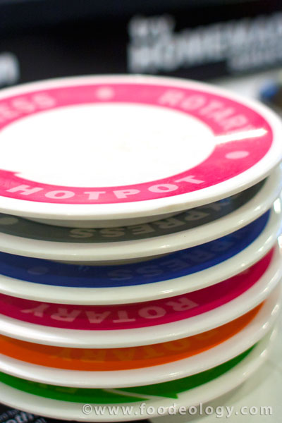 要说Kichi Kichi的食材分类,那叫一琳琅满目!鱼类、家禽、家畜、海鲜、蔬菜、米面等等一共8类食物,用8种颜色的盘子区分。其实为食主义是记不得什么颜色是什么类的啦,直接看菜就好了么,呵呵。不过把它们叠在一起一定很壮观!