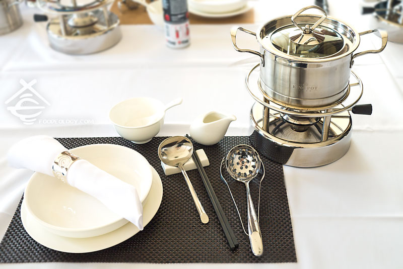 King Pot的精致,从餐具开始。它的口号是“享用五星级般的皇室火锅”,那餐具在火锅界还真算是皇家。特别是一人一个的锅,每个价值150瑞士法郎!一般的火锅不是用煤气就是用电磁炉,这类加热或者是有辐射或者不稳定;而King Pot的锅用一种专门的可燃气体,沸腾得快且持续性高,简洁干净。