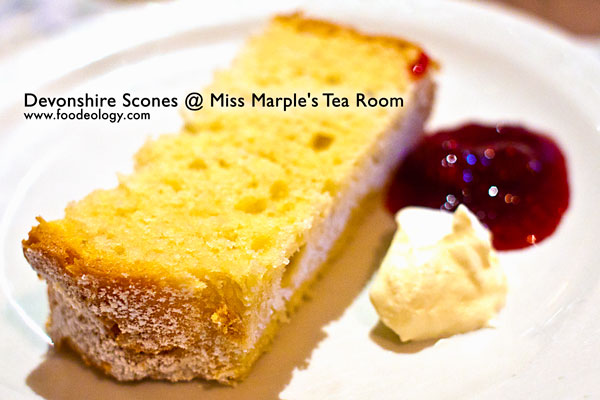 这家餐厅最著名的就是它的英国松饼(又叫司康饼),在菜单里自开一处并写着“Miss Marple’s world renowned speciality”,有原味与水果味两种。