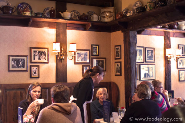 满墙关于Miss Marple的照片,复古的壁灯,成排的不同种类看似私家收藏的各色茶壶,顾客基本是本地人而且很多面目慈祥的老年人,热情好客的服务生,略微喧哗的环境——简直就是复制了小说里英国农村tea room的风格,淳朴、温馨。
