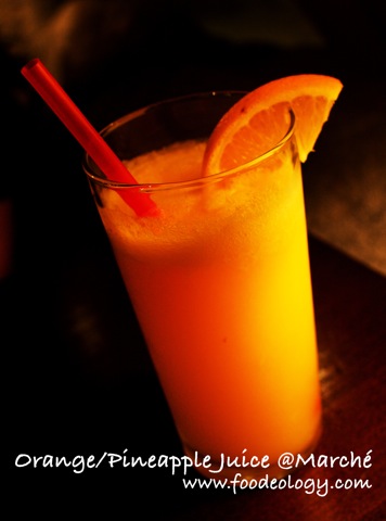 我们先后叫了两杯香橙+菠萝的,虽然近7块钱一杯的价格是Marché式的“敲诈”,但它滑得够有质感,酸得够有味,可以算是当晚最享受的部分了。