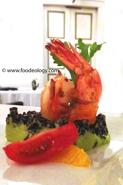 King Tiger Prawns ($28)气场强大,不是边上的西红柿小,是它真的大个子威风凛凛。上面是以初榨橄榄油煎出来的嚼劲十足的老虎虾,下面是鳄梨糊覆盖意大利黑米饭(Black “Venere” Rice)。这是Senso的招牌菜之一,值得一试。