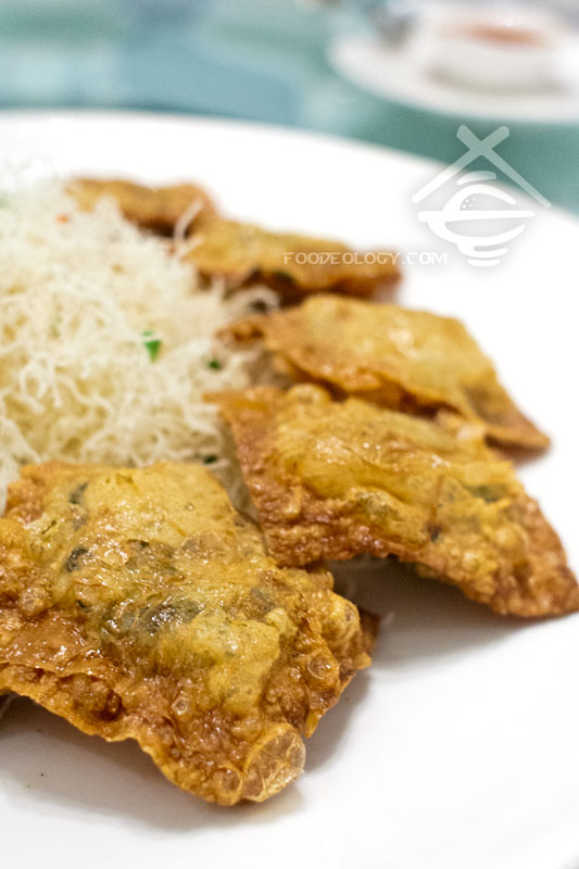 这道菜的灵感源自莆田南少林寺的素斋,把中间的馅料改成鲮鱼做的鱼浆、生蚝、韭菜,包上莆田菜馆自制的豆皮,炸过之后就是如此犹如“黄金包(treasure pocket)”的样子,外皮又像僧侣的袈裟。