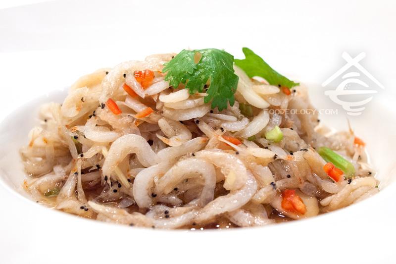 从莆田运来的虾苗与众多虾苗有所不同,它在被风干时水分的流失程度掌控得非常精准,吃起来并不像一般虾苗一样薄薄干干的,还是保有一份嚼劲和一份“肉感”。也因如此,它更好地吸收了香醋的味道,吃起来清新爽口。