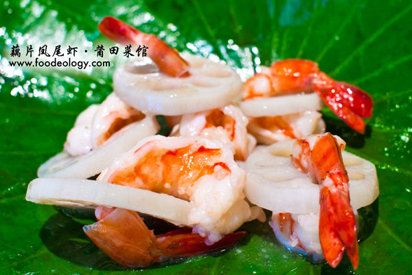 肥硕弹牙的大虾被淋上一层鲜美的汤汁,穿过莲藕中间的孔造型俏皮;新鲜的莲藕脆爽微甜,与大虾荤素配搭,简单却精致、美味。