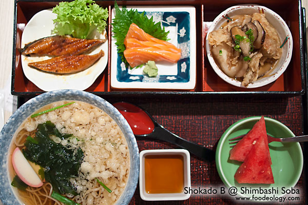 再次造访Shimbashi Soba的时候,为食主义就学乖了,不点滑不溜秋冷面餐,改点这个看起来很丰盛的松花堂便当B套餐。