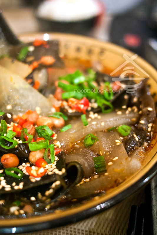 为食主义选了几个特别的菜,在星星国很少吃的冬瓜和海带,以及川菜里一定要尝的宽粉。因为不是自己冒,所以待到上桌时,看着那熟悉的麻辣汤汁,你也许并猜不到这就是冒菜。但想一想,又有几家把几样素菜统统放进一个香辣锅里的呢?大爱思味家的宽粉,那个韧劲加上汤汁的味道实在是绝配。