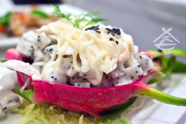 很喜欢它清爽的口感,火龙果的清香原来不仅让它适合做水果,也适合做开胃菜。龙虾肉质鲜嫩有劲道,沙拉酱微酸的味道与火龙果肉掺在一起酸甜可口。