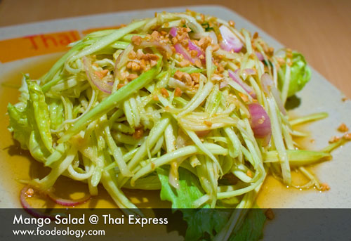Thai Express的芒果沙拉是拌洋葱丝儿的,为食主义不爱洋葱,然后眼神又不太好挑不开它们,所以在洋葱味的大肆渲染下,为食主义是不太喜欢那个冲冲的味道了。