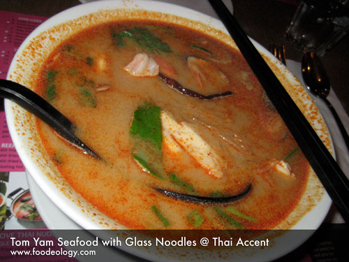 不知道为什么,Thai Accent之前的鲜虾汤可以选要浓的还是清的,海鲜汤却没了这么选择。当Thai Express还是走清汤路线,Thai Accent的转道用了厚汤底。