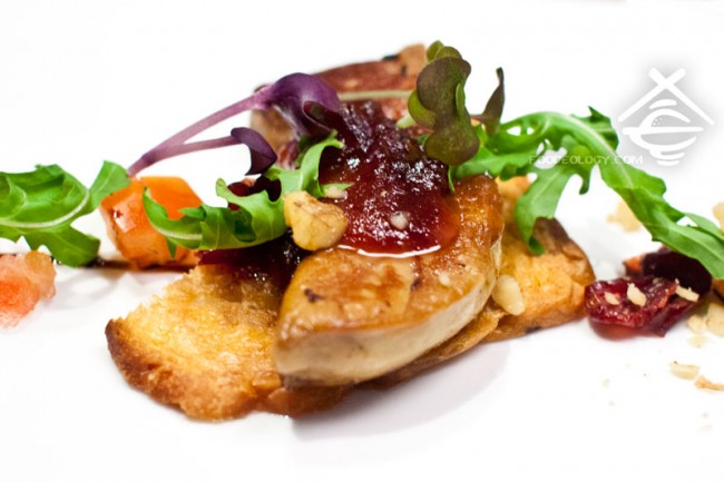 为食主义个人对鹅肝倒没有什么兴趣,主要是嫌它肥而且对鹅们很摧残。这个鹅肝表层有一股烤过的香味,反而让它吃起来不那么肥腻。不过最大的亮点是那蔓越莓酸酸甜甜的汁,不仅入味还很煞肥腻的口感,为这道小点增色不少。