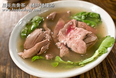照片里还带着一点血色,不过吃到嘴里的时候已经是熟的了,想来它可能是用汤的热量来完成最后一刻的烹煮,这样猪肝猪腰就不会老。星辰的猪肝真的是嫩得到位,沾点酱油小辣椒,味道很棒。猪腰是另一个比较难控制火候的。星辰的汤里的猪腰入味难了点,即使沾着酱油也还是偏淡,没有直接用酱油拌着那样好吃。